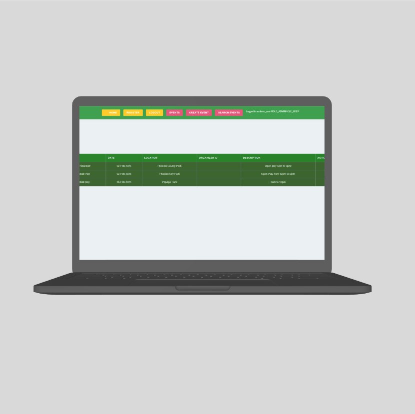 Created to simplify the organization and management of pickleball events, allowing players to easily find and join local games while helping organizers manage their events efficiently.